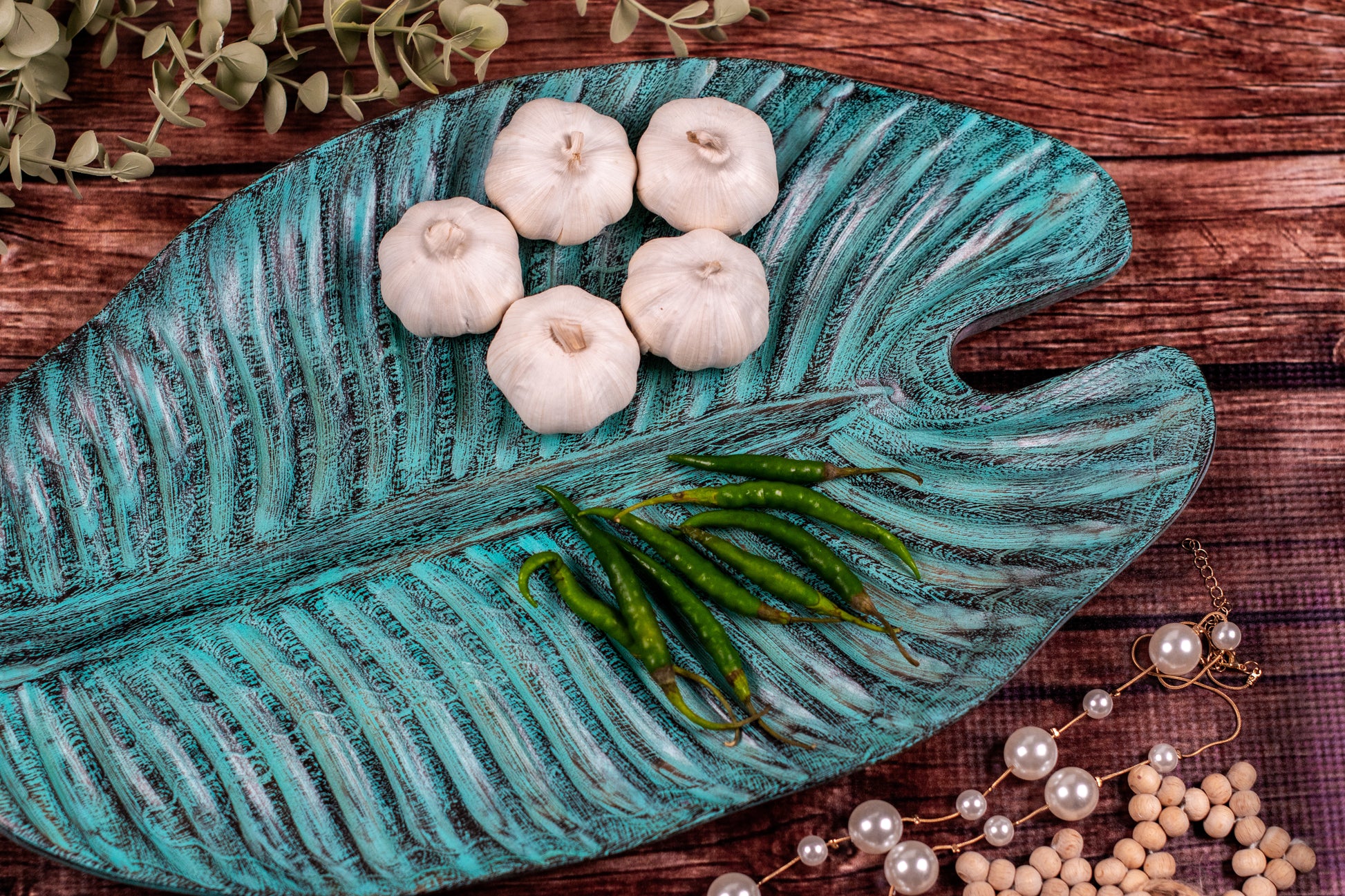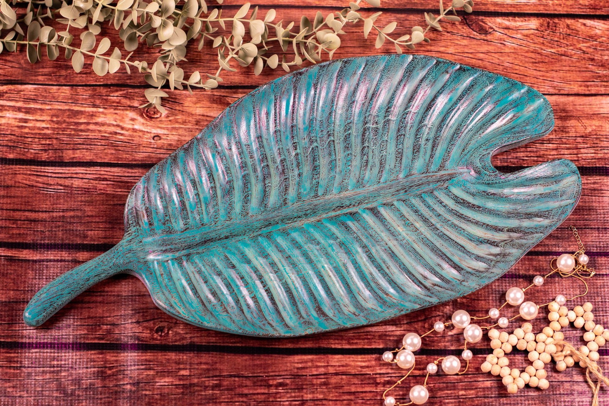 Wooden suar leaf handmade in Java/Indonesia.